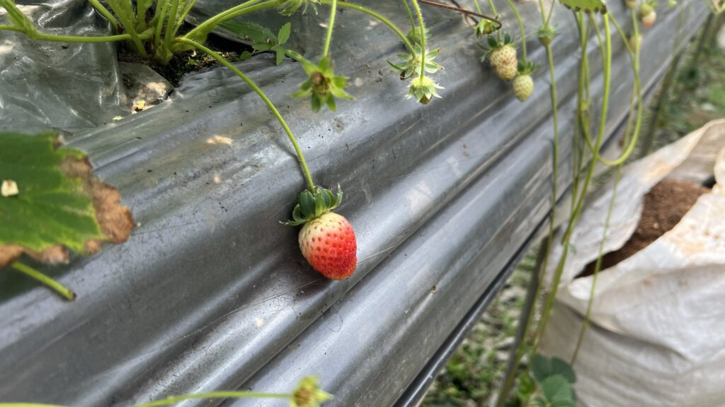 イエンの元々の畑にある、ニッポンのイチゴはというと、こちらもぼちぼち出来ていた。
